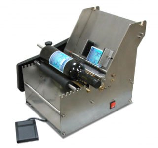 M S3 - Машината се използва за залепване на квадратен/ правоъгълен етикет или на обвиващ етикет върху всякакъв тип цилиндрични бутилки с диаметър от 40 до 180 мм. Минимална широчина на етикета: 55 мм. Всеки път като се сложи бутилката/контейнерът върху валците, машината поема един етикет и автоматично го залепва върху бутилката/контейнера. Ако върху бутилката е залепен един етикет, може да се постави и втори етикет. Системата центрира автоматично поставянето на втория етикет (има микроконтролер със сензор за етикета и фотоклетка). Тавичката за лепило и валякът за лепило се свалят лесно за бързо почистване.