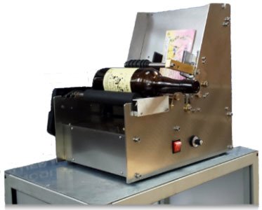 M S2 - Машината се използва за залепване на квадратен/ правоъгълен етикет или на обвиващ етикет върху всякакъв тип цилиндрични бутилки с диаметър от 40 до 180 мм. Минимална широчина на етикета: 55 мм. Всеки път като се сложи бутилката/контейнерът върху валците, машината поема един етикет и автоматично го залепва върху бутилката/контейнера. Тавичката за лепило и валякът за лепило се свалят лесно за бързо почистване.