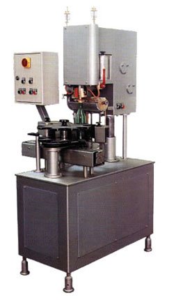 С тази машина могат да се залепват бандероли на различни кръгли бутилки, както при горните 2 вида, но тук, с помощта на допълнителна приставка, могат да се залепва бандероли и върху правоъгълни бутилки. Машината е снабдена с устройство за топло залепване с пистолет и декодер за автоматично регулиране времето за впръскване на лепилото. Машината е снабдена с автоматично устройство за регулиране на височината на бутилките от 180 до 380 мм. Има и устройство за автоматично спиране на машината при блокиране на бутилките. Машината е снабдена със скоростен редуктор. Сгъстеният въздух, с който работи машината, трябва да бъде min. 5 Atm (консумация 200 л/минута).