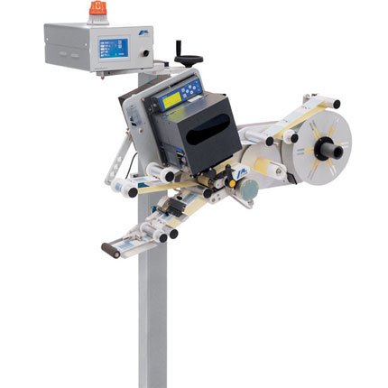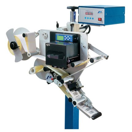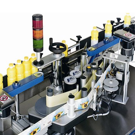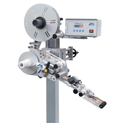 M SN - Полу-автоматична машина за самозалепващи етикети (преден и заден етикет) върху цилиндрични бутилки с диаметър от 20 до 180 мм (коничност по-малка от 4˚). Максимална височина на етикетите: 160 мм. Двата етикета трябва да са поставени върху ДВЕ ленти на разстояние 2-3 мм. Машината е изработена от неръждаема стомана, с опростена и прецизна работа; има вграден функционален микропроцесорен контрол и е поставена на количка за лесно придвижване. Като се сложи бутилката/контейнерът върху валците, машината автоматично поставя етикета върху бутилката/контейнера. Благодарение на дисплея, операторът може лесно да вкара Диаметъра на бутилките, както и широчината на предния и задния етикет; микроконтролера центрира автоматично поставянето на втория етикет. Машината е оборудвана с мултифункционален дисплей с автоматична броячна система. По заявка, машината може да се оборудва с фотоклетка (за по-добро центриране при прилагане на заден етикет върху бутилки с вече залепен преден етикет) и термо-трансферен маркер за принтиране на партида, дата на производство, годност (2 реда, 30 букви).