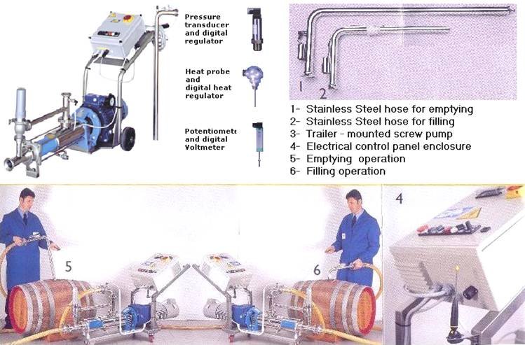 И други съдове, претакане, изпомпване на мъст над гроздовите утайки, при филтриране, при бутилиране, при охлаждане: с бай-пас, флоуметър и контролен панел с микропроцесор